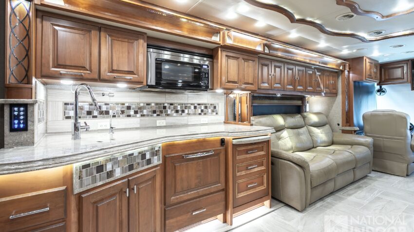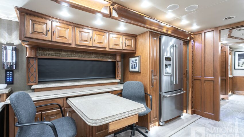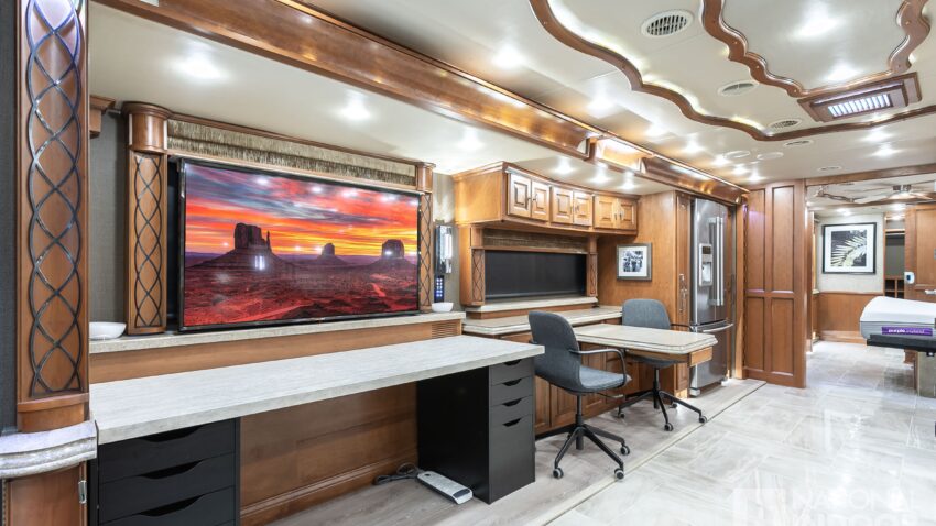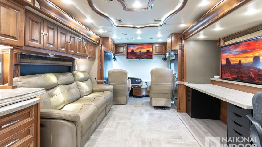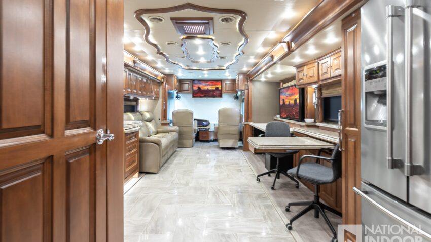When we saw the swatches for the Shimmer interior.. and then saw a prototype on the line with it (first week of May, 2015), we were smitten! We’ll certainly let ya know if we’re ready to sell by then.. but we anticipate this coach being with us for 15+ years.. 🙂 Congrats on your pending retirement and good luck with the new coach search! 🙂